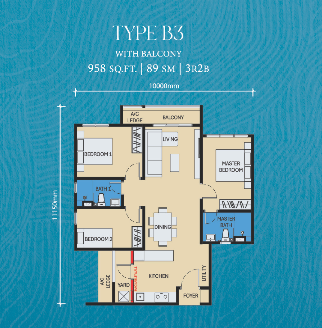 The floor layouts of D’Evia Residences are designed to support practical and comfortable urban living. The development offers a range of well-planned unit configurations with built-up sizes starting from approximately 657 sq ft up to about 1,100+ sq ft, featuring 2- to 4-bedroom arrangements suitable for individuals, couples, and families. Each layout focuses on efficient space planning with functional living areas, dedicated dining spaces, and well-positioned bedrooms to maximise usability and natural lighting. These thoughtfully arranged layouts aim to provide flexibility for different lifestyle needs while maintaining a comfortable residential environment within the growing township of Kwasa Damansara.supporting a comfortable and flexible city lifestyle.